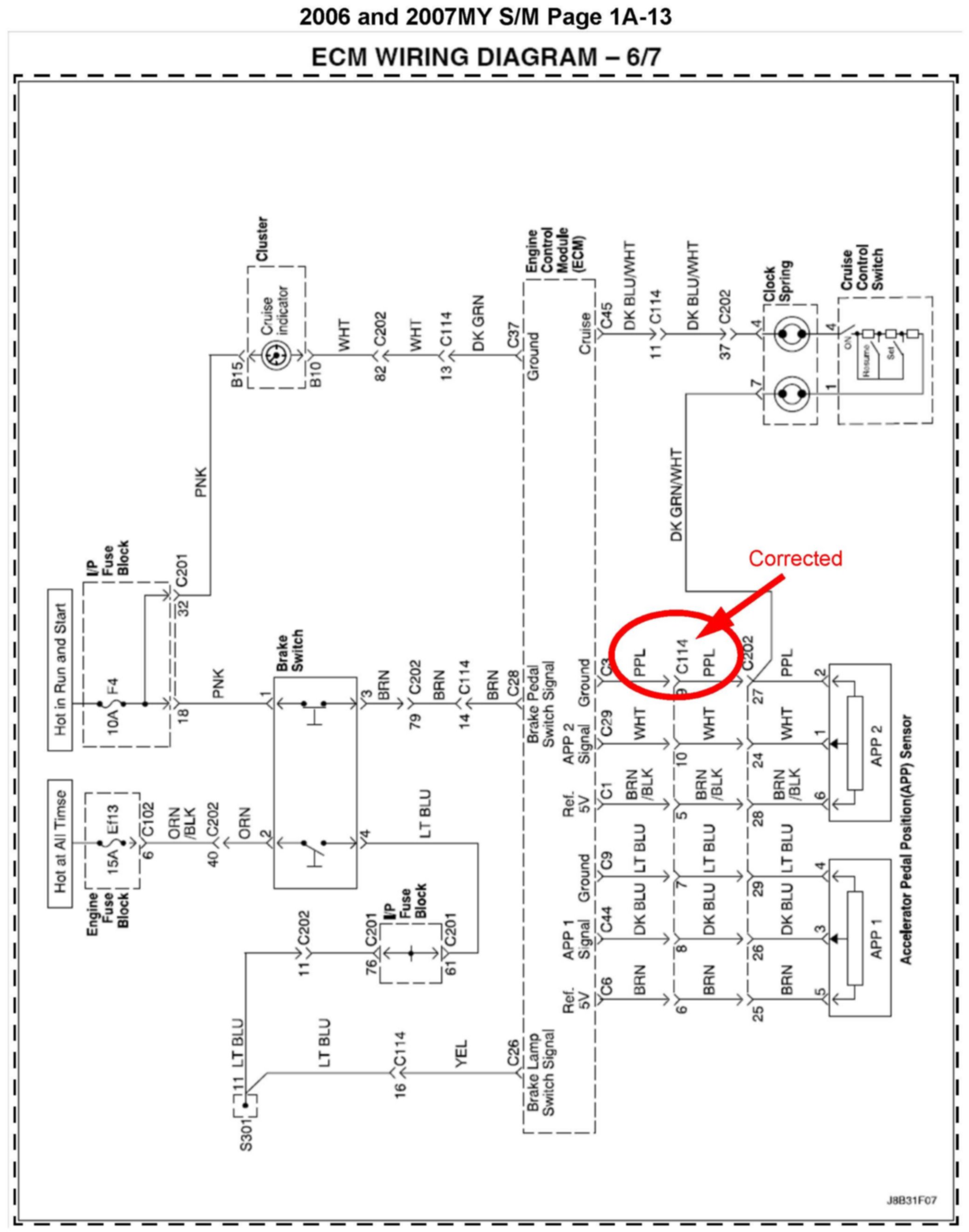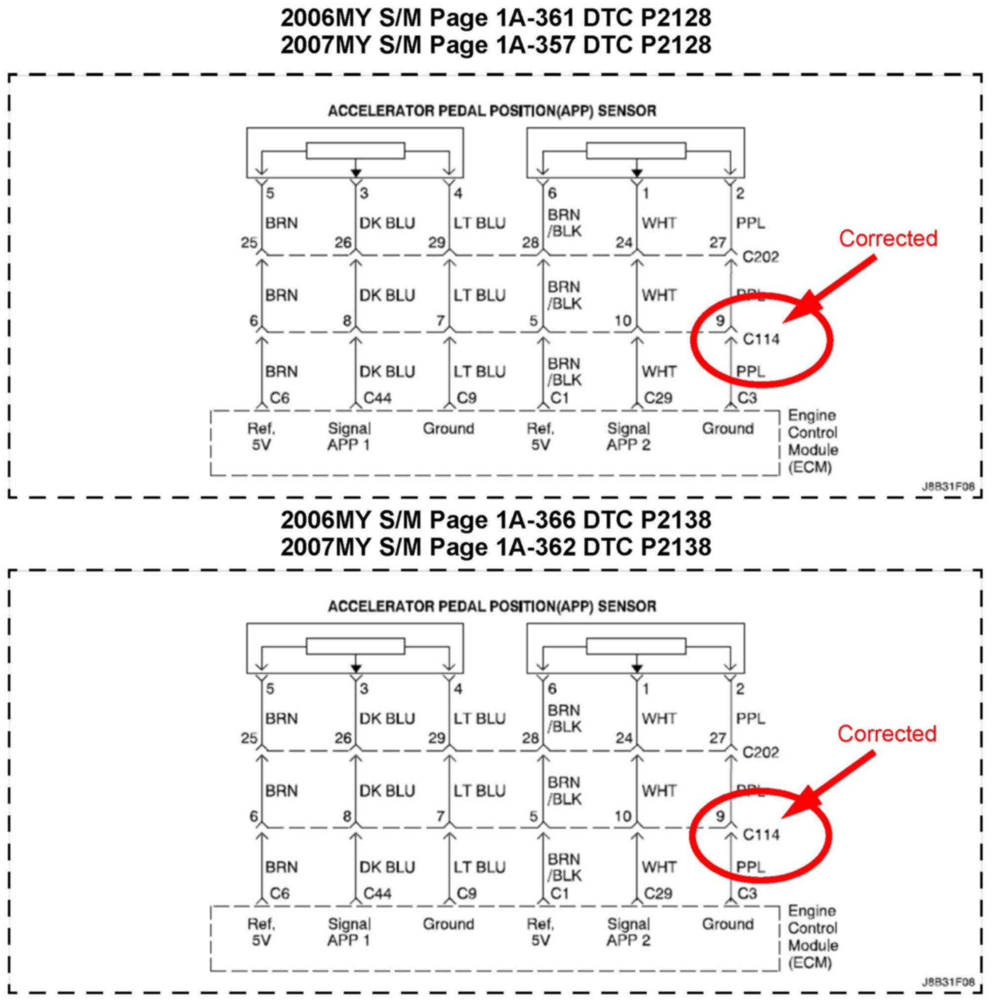 SERVICE MANUAL UPDATE: WIRING DIAGRAM UPDATE FOR DTC P2122, P2123, P2127, P2128, 2138, ECM DIAGRAM 6/7, AND ACCELERATOR PEDAL POSITION (APP) SENSOR CIRCUIT DIAGRAM