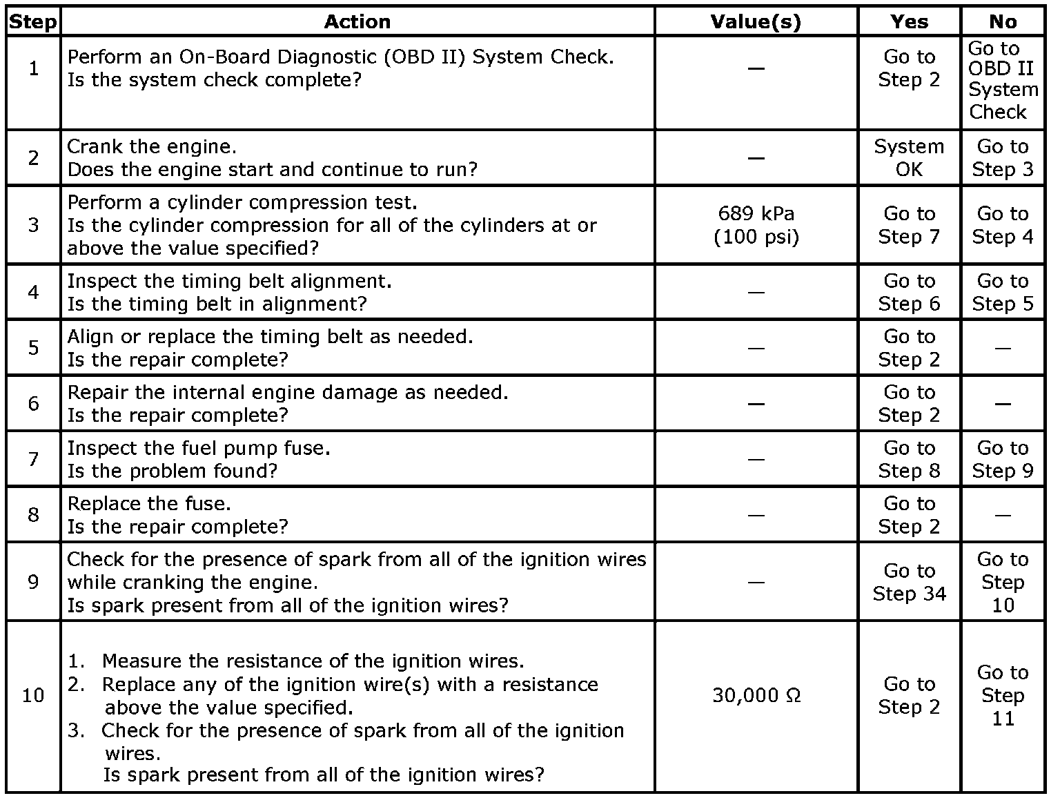 Number(s) below refer to the step number(s) on the Diagnostic Table.