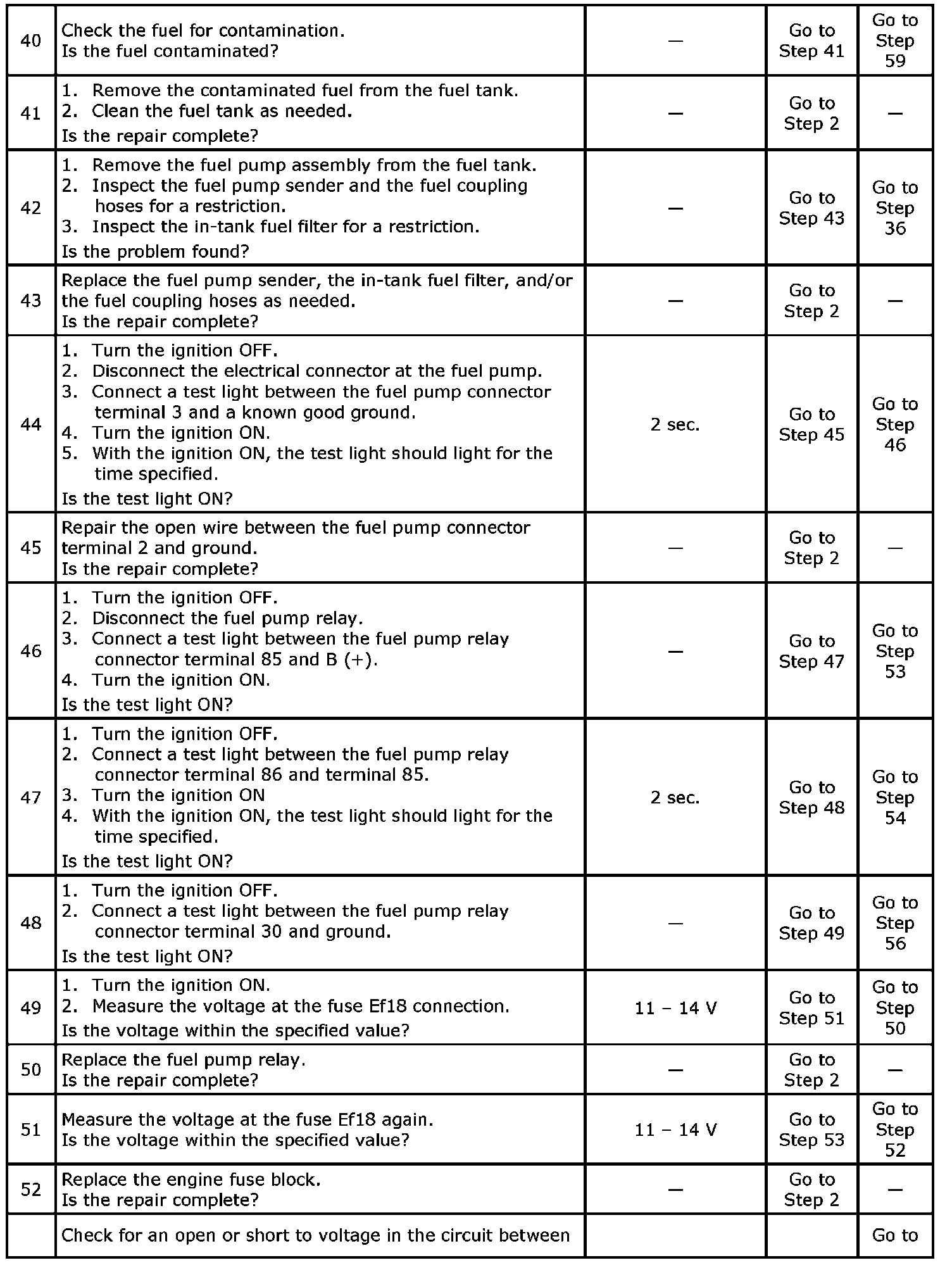4. This step checks for proper operation of the ECM's control of the fuel pump circuit.