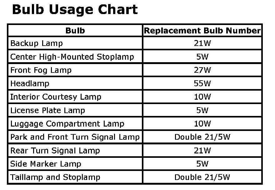 Bulb Usage Chart: