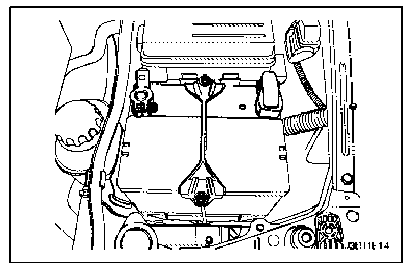 Tighten: Tighten the battery carrier tray upper, lower and side bolts (if applicable) to 20 Nm (15 ft. lbs.).