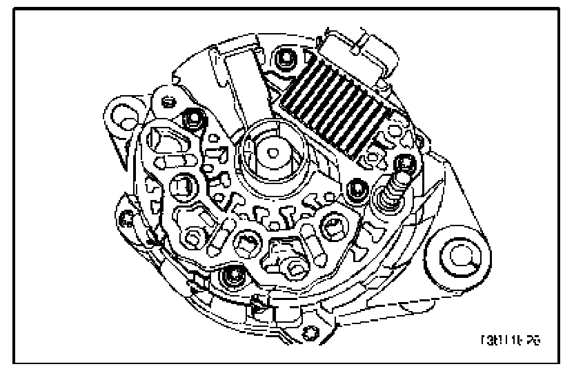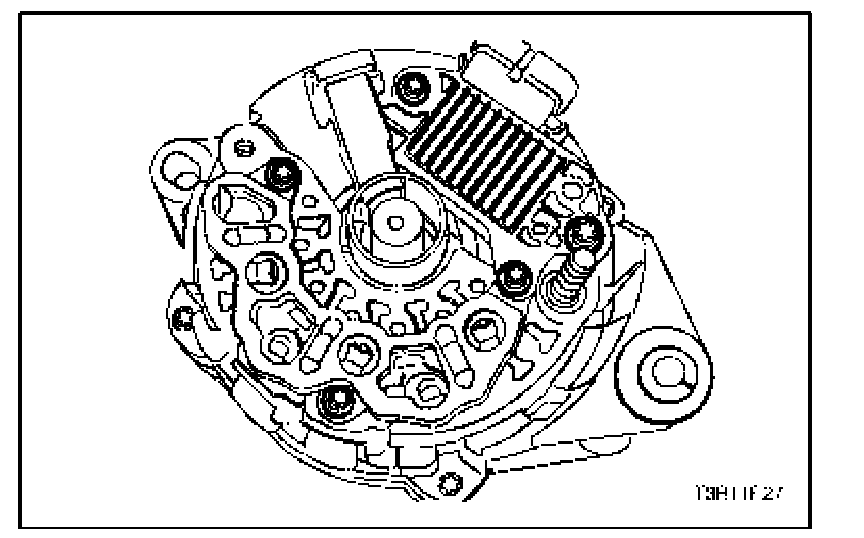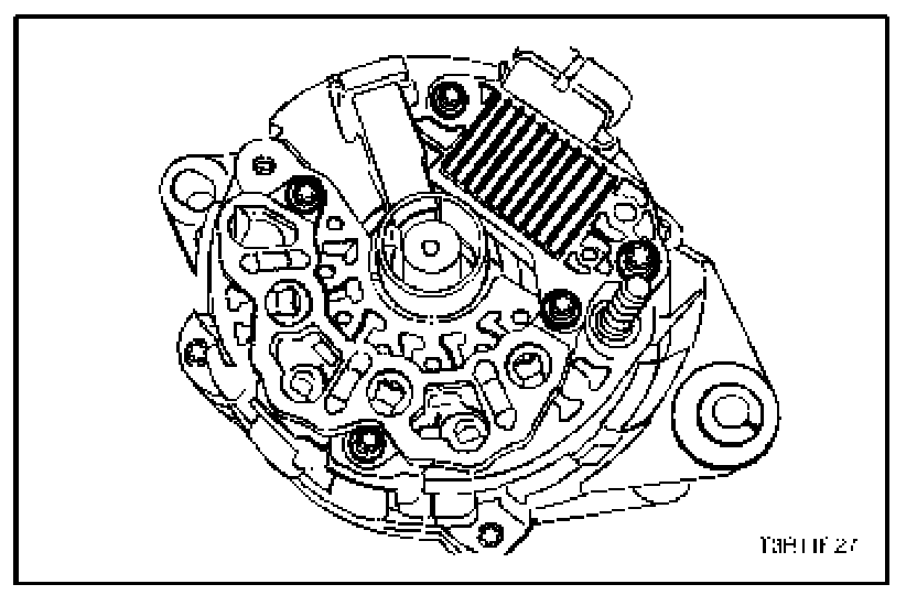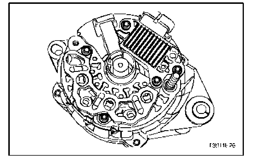 10. Fasten the screws holding the rectifier regulator/brush holder assembly to the end frame.