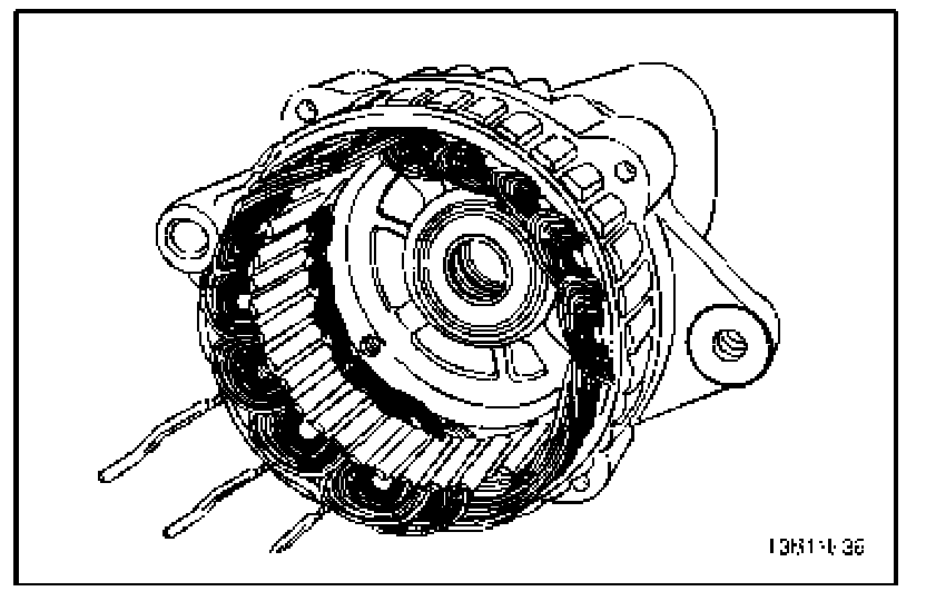 19. For vehicles with an internal generator fan, remove the drive end frame and the fan.