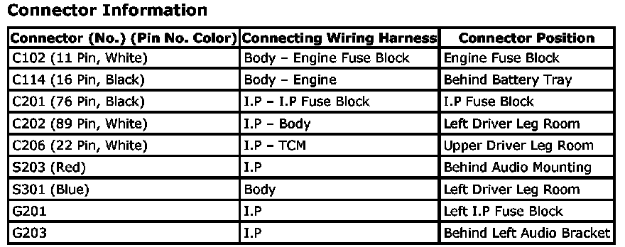 CONNECTOR INFORMATION