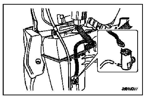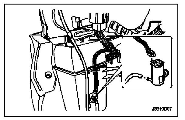 1. Disconnect the windshield washer hose from the washer nozzles.