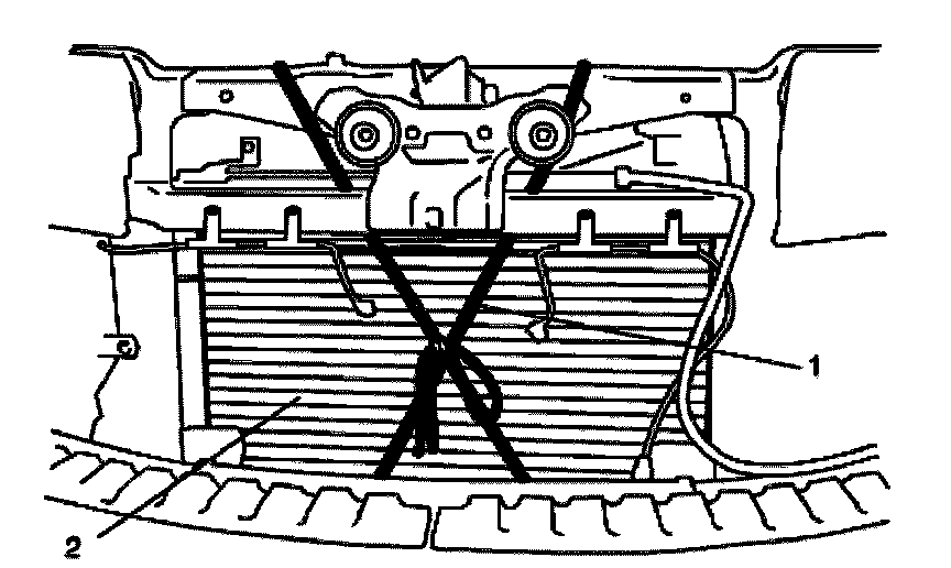10. Fix radiator (2) to body with rope (1) to avoid the radiator (2) fall off when front suspension frame lowered.