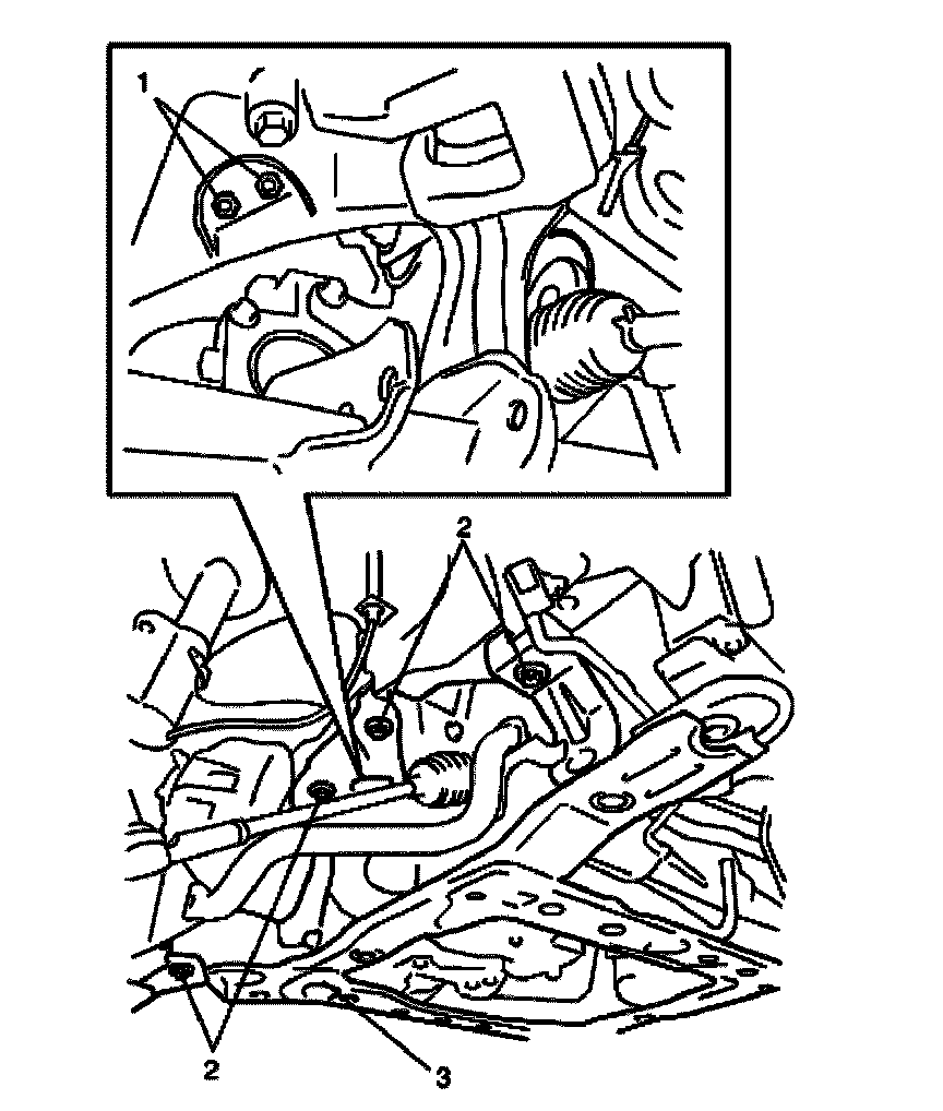 2. Install stabilizer bar (1), stabilizer bushing (2) and stabilizer mounting bracket (3) to suspension frame.