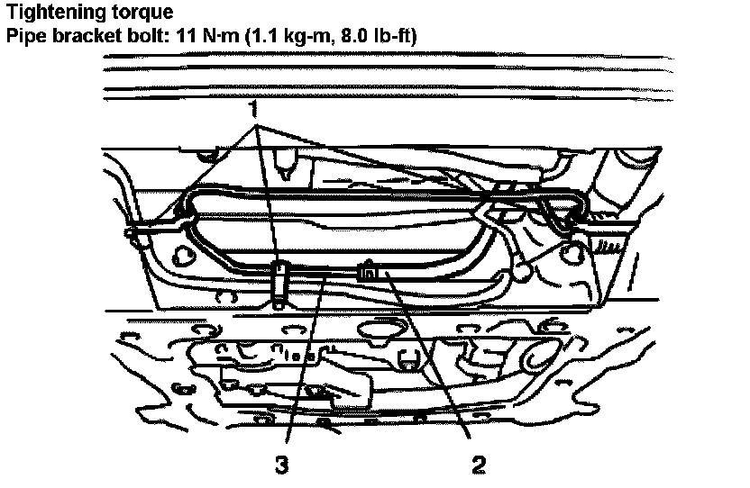 Pipe bracket bolt: 11 Nm (1.1 kg-m, 8.0 ft. lbs.)