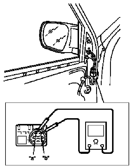 3. Check for continuity between terminals "a" and "b". If no continuity, replace outside mirror.