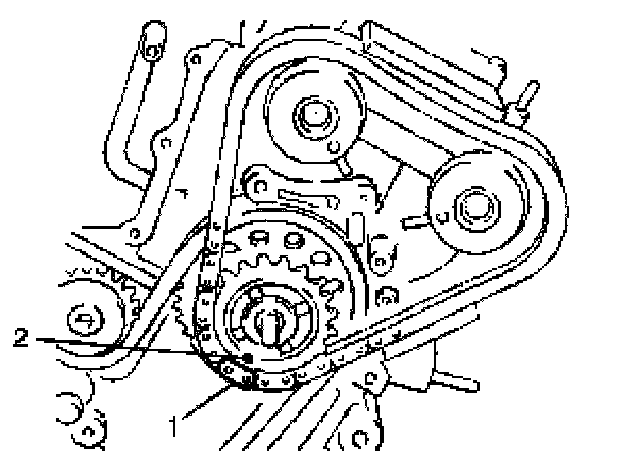 2) Check timing mark on idler sprocket No.2 (1) as shown in figure.