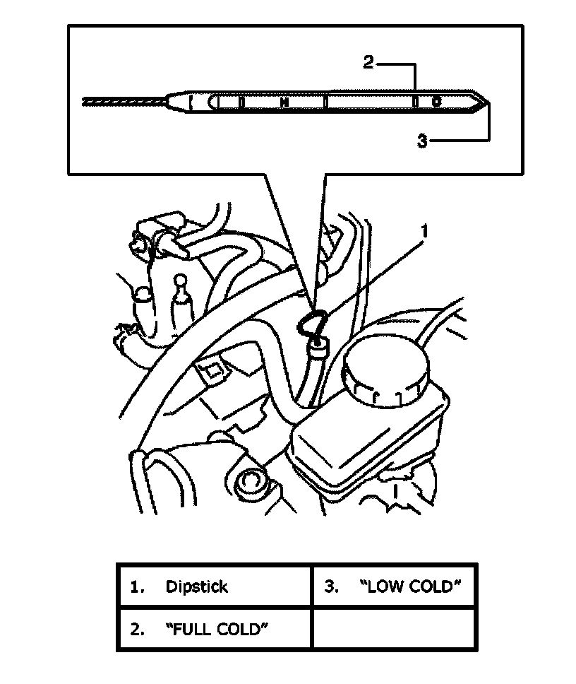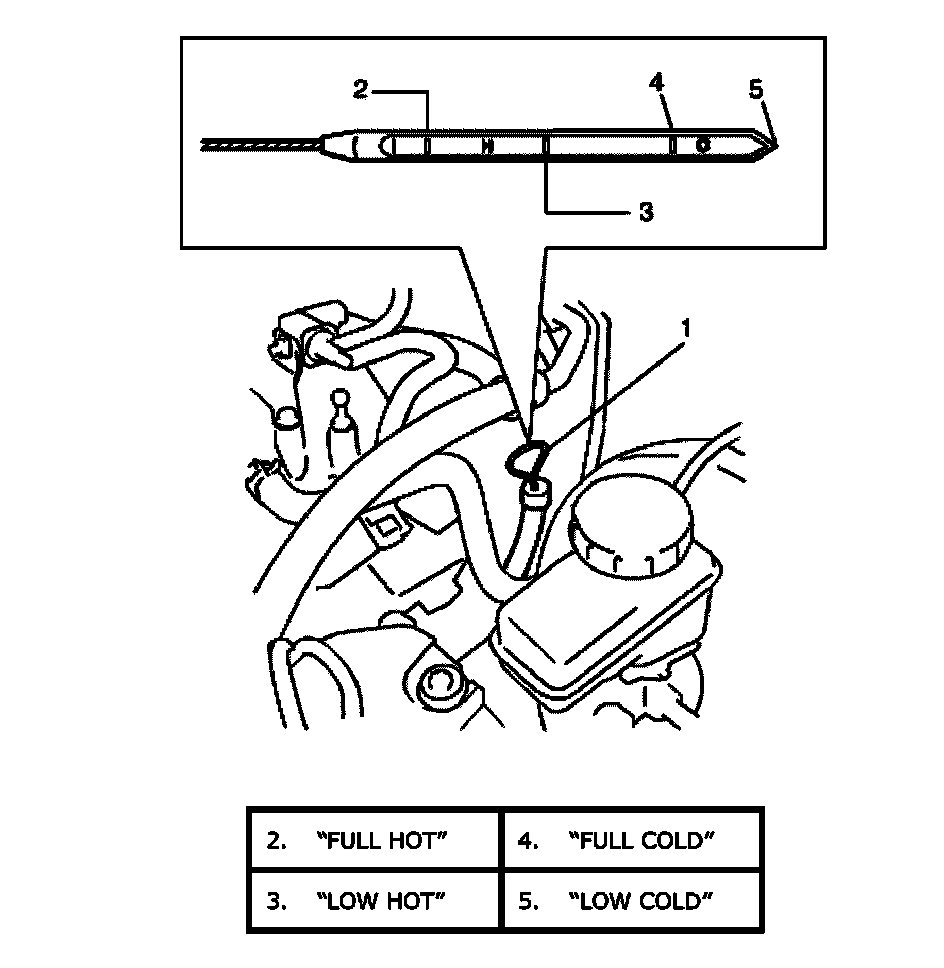 ^ If vehicle was driven under high load such as pulling a trailer, fluid level should be checked about half an hour after it is stopped.