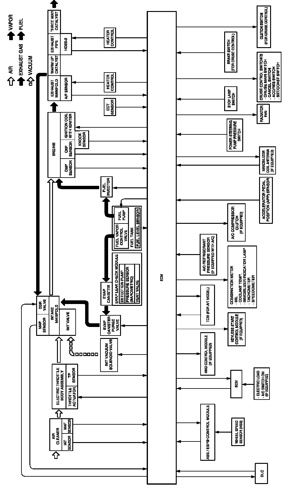 Electronic Control System DescriptionThe electronic control system consists of various sensors which detect the state of engine and driving conditions, ECM which controls various devices according to the signals from the sensors and various controlled devices.