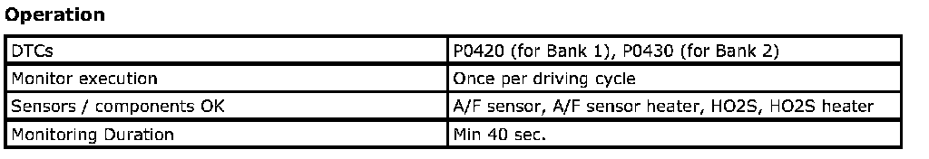 OBD System Description - Catalyst MonitorSystem Description / Monitoring Procedure