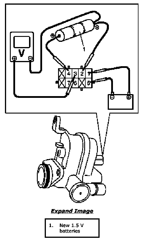 a. Arrange 3 new 1.5 V batteries (1) in series and connect its positive terminal to terminal "4" for EVAP leak check pressure sensor of EVAP leak check module and negative terminal "2".