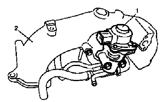 2. Remove EGR valve (1) and gasket from intake collector (2).