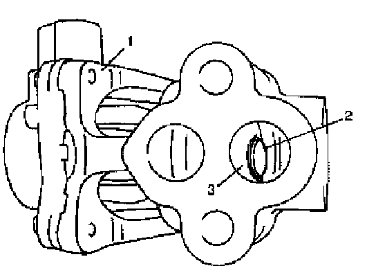 3. Inspect valve (2), valve seat (3) and rod for fault, cracks bend or other damage. If found faulty, replace EGR valve (1) assembly.