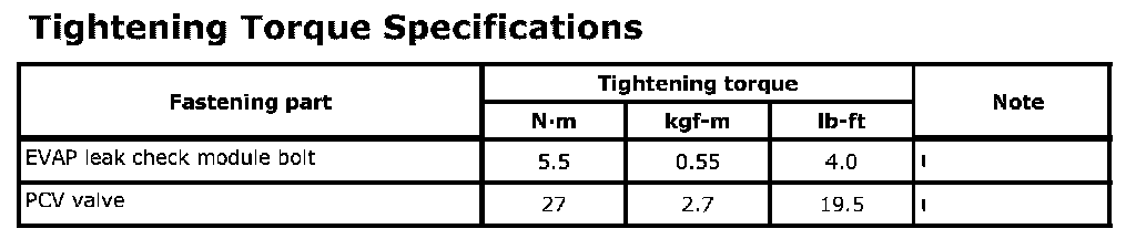 Tightening Torque Specifications: