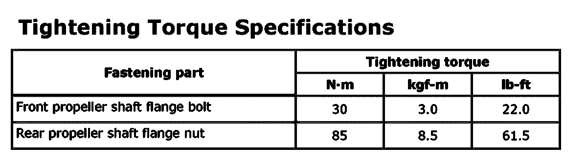 NOTE: The specified tightening torque is also described in the following. Propeller Shaft Construction