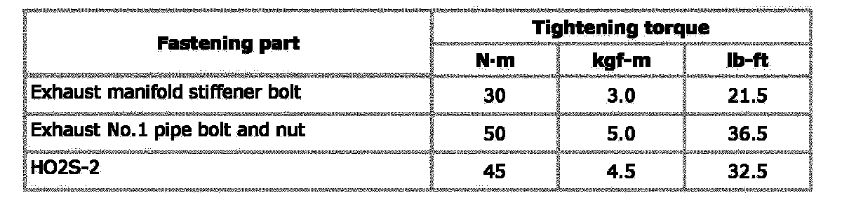 Tightening Torque Specification: