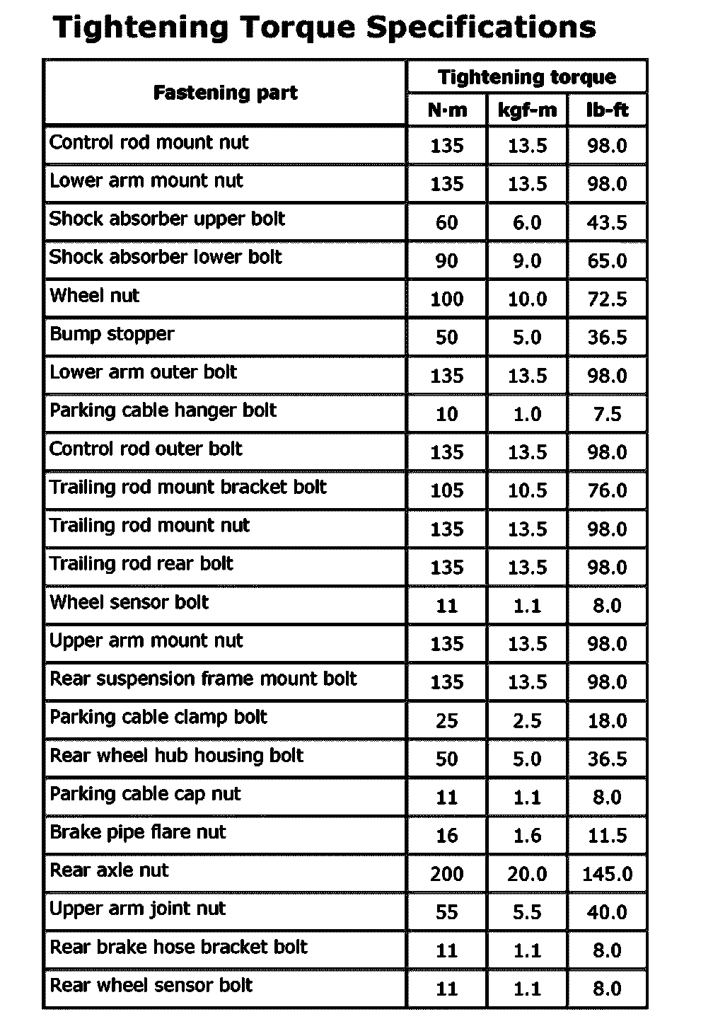 Tightening Torque SpecificationsTightening Torque Specifications: