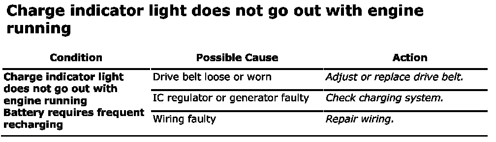 Charge Indicator Light Does Not Go Out With Engine Running: