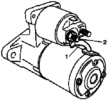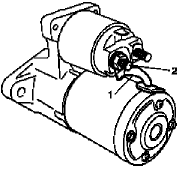 1. Disconnect lead wire (1) from terminal "M" (2).