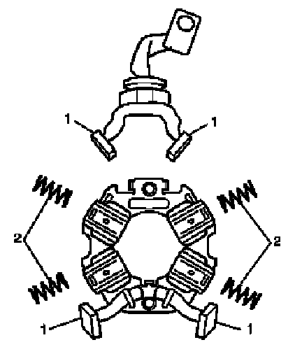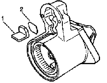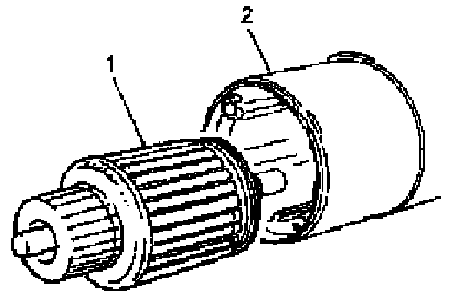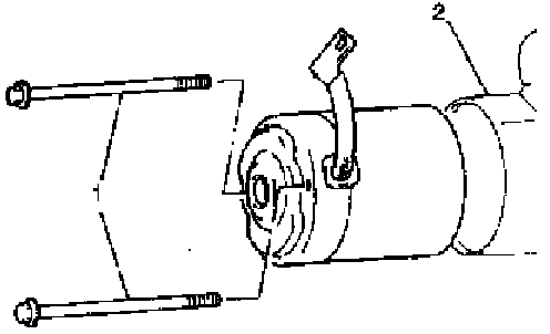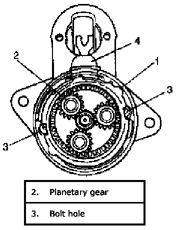 5. Remove through bolts (1) shown in the figure, then separate reduction gear assembly (2) from starting motor assembly.