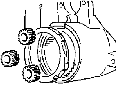 6. To overhaul reduction gear assembly, remove packing (2) and planetary gears (1).