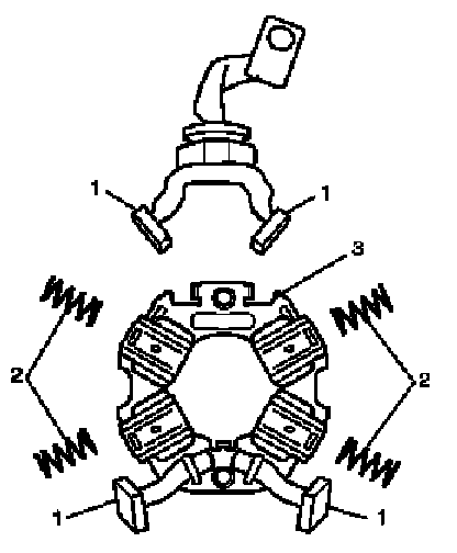 4. Install brushes (1) and brush springs (2) to brush holder (3).