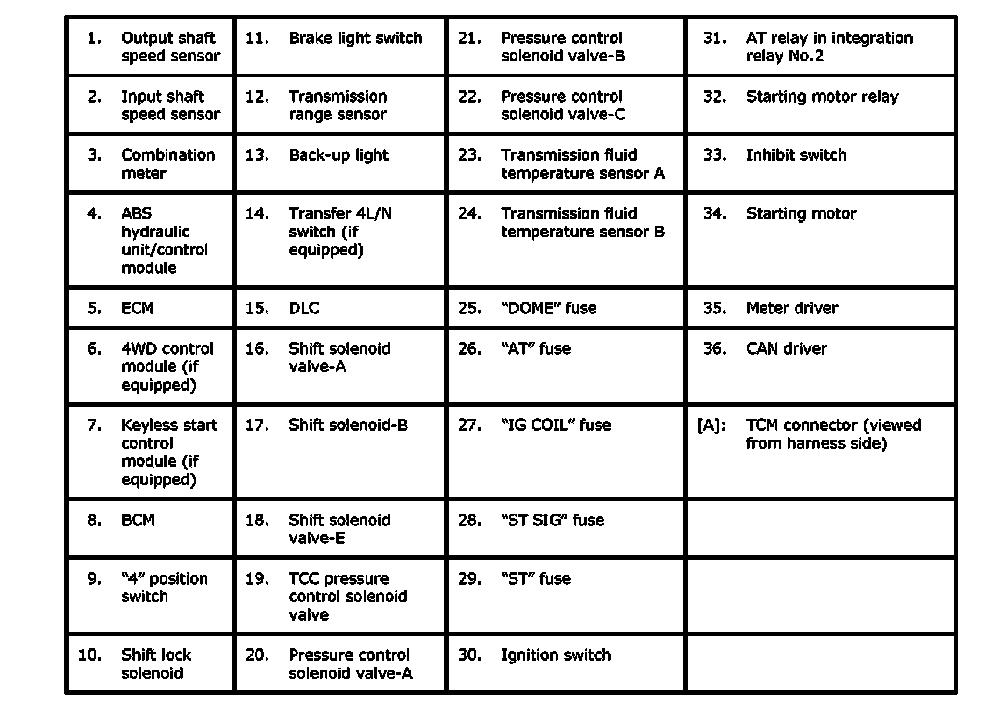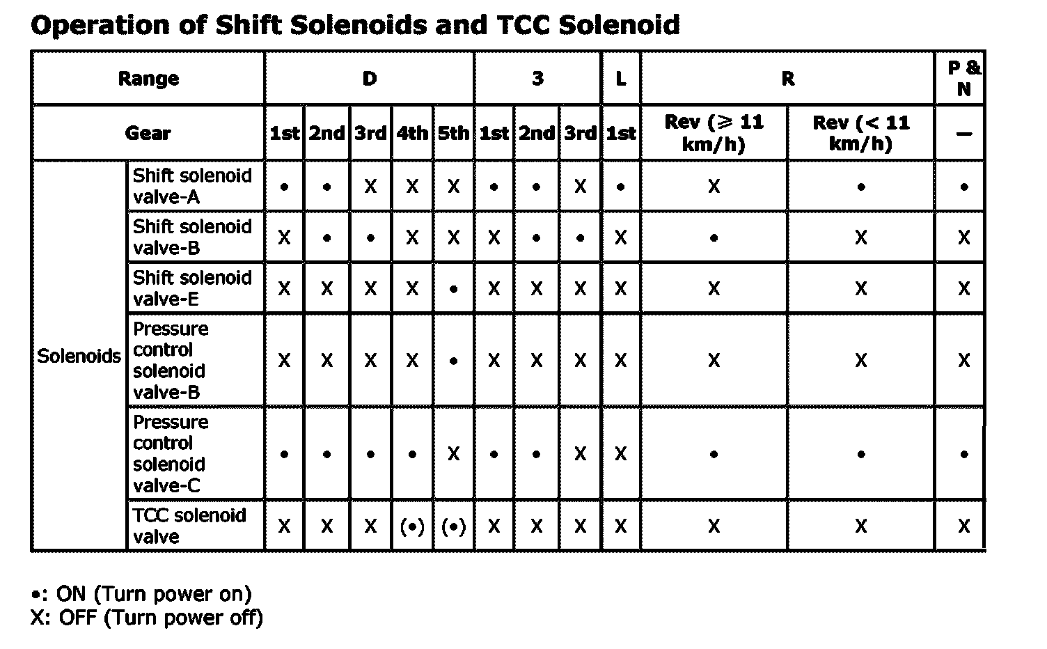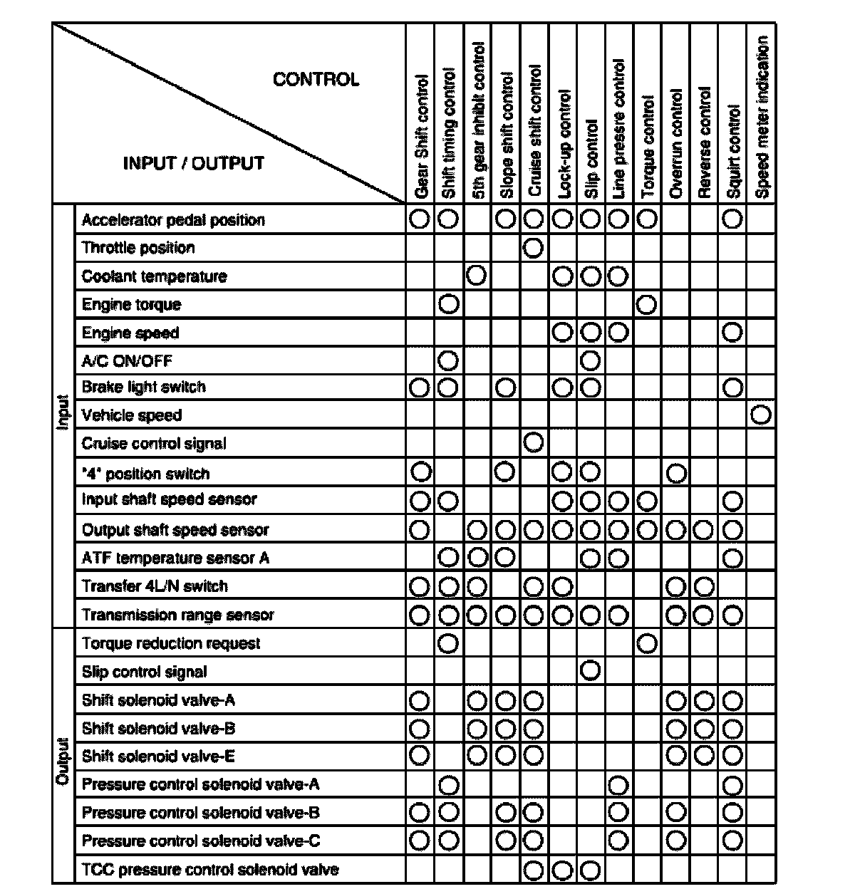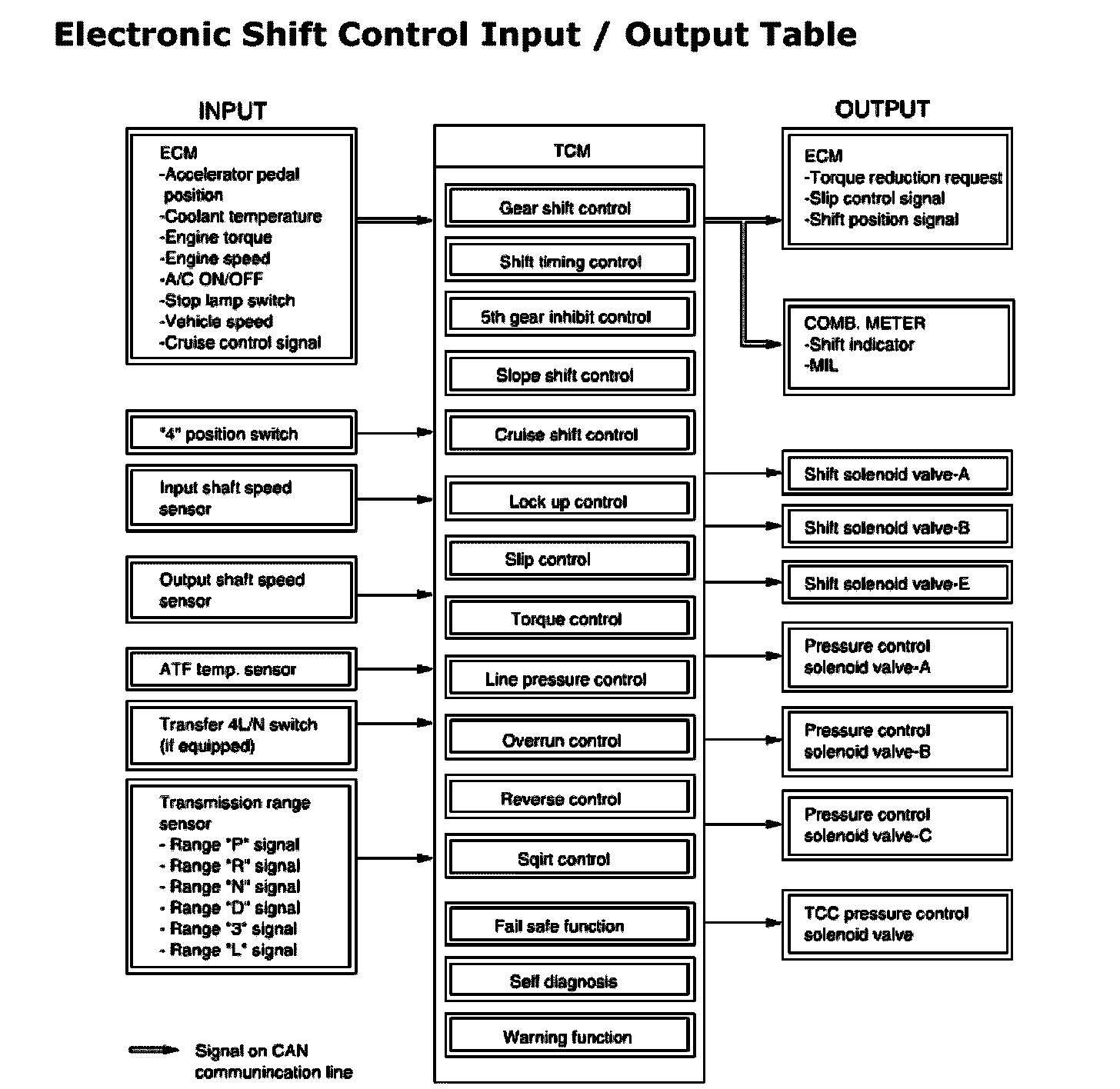 Electronic Shift Control Input / Output TableElectronic Shift Control Input / Output Table (part 1 ):
