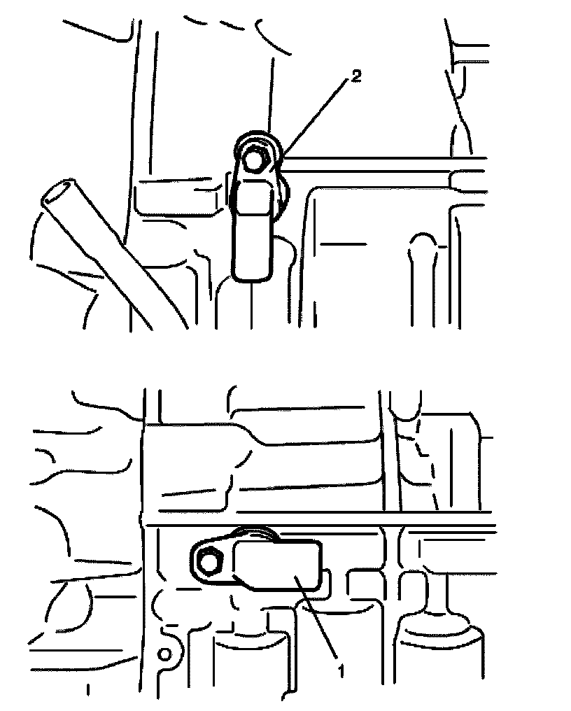 14. Remove transmission fluid temperature sensors (1) from sensor clamps (2).