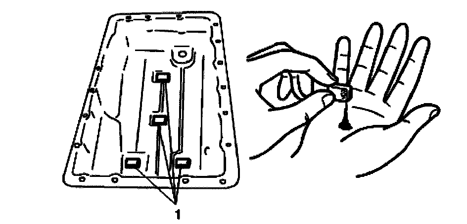 12. Remove the 4 magnets (1) and clean them to steel particles etc.
