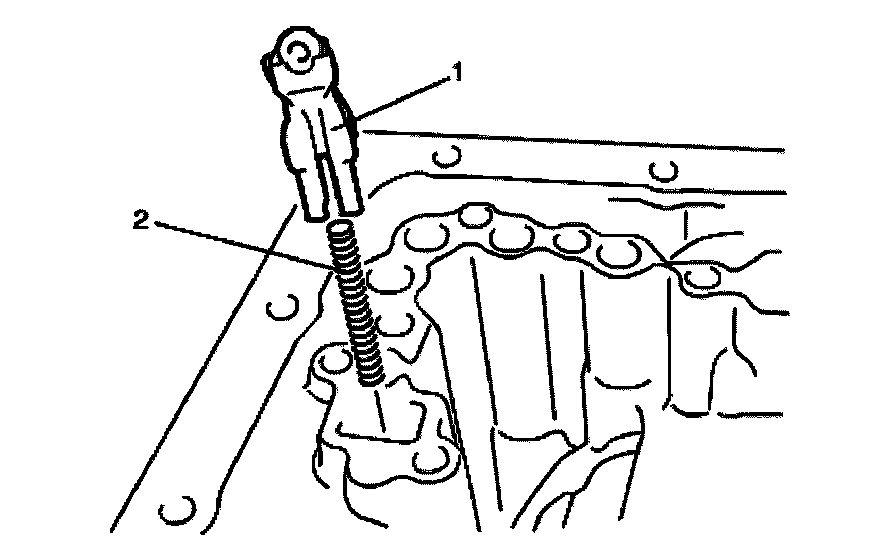 18. Remove spring plate (1) and manual shift lever spring (2).