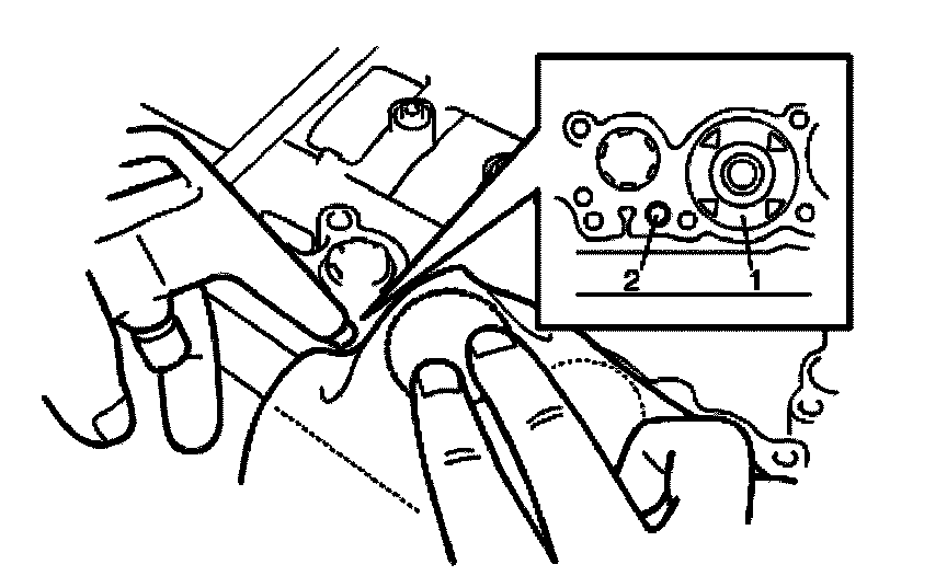 38. Remove thrust bearing race No.1 (1) and thrust bearing race No.10 (2) from oil pump assembly.