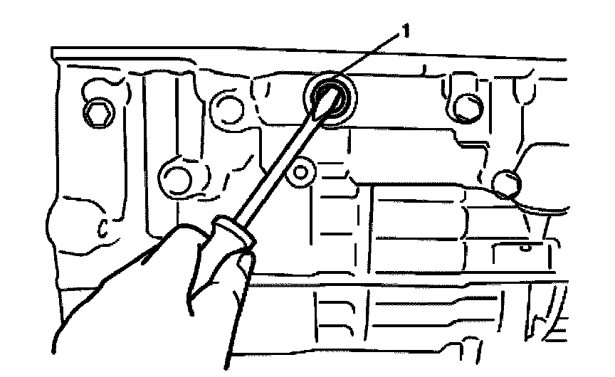 35. Remove 2 manual shift shaft oil seals (1) from transmission case by using flat end rod or the like.