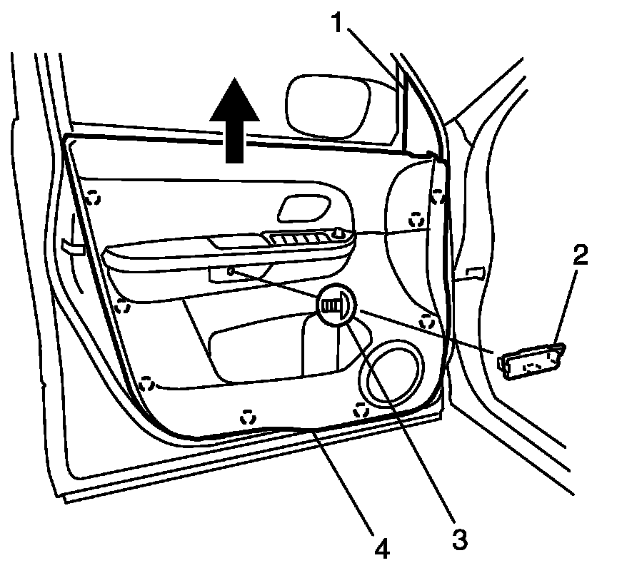 3. Remove door trim (4) as shown.