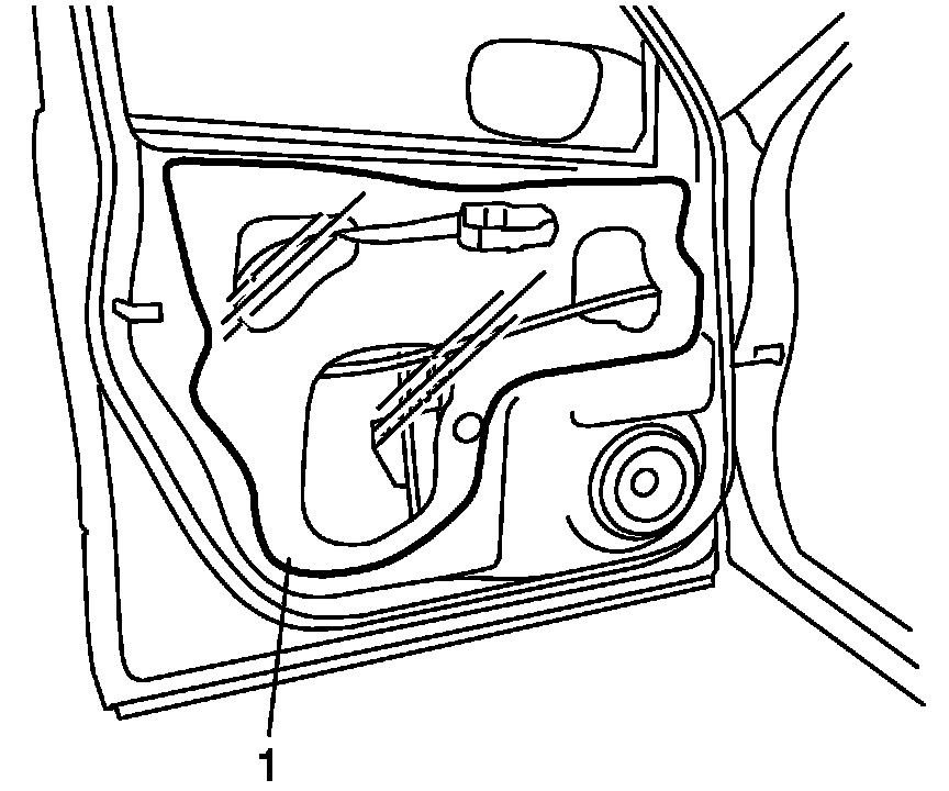 5. Remove door glass mounting screws (1).