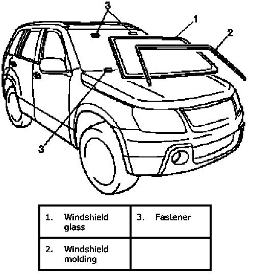 Windshield ConstructionThe windshield is installed by using a special type of adhesive (that is, one component urethane adhesive used with primer). For the windshield replacement, it is important to use an adhesive which provides sufficient adhesion strength and follow the proper procedure.