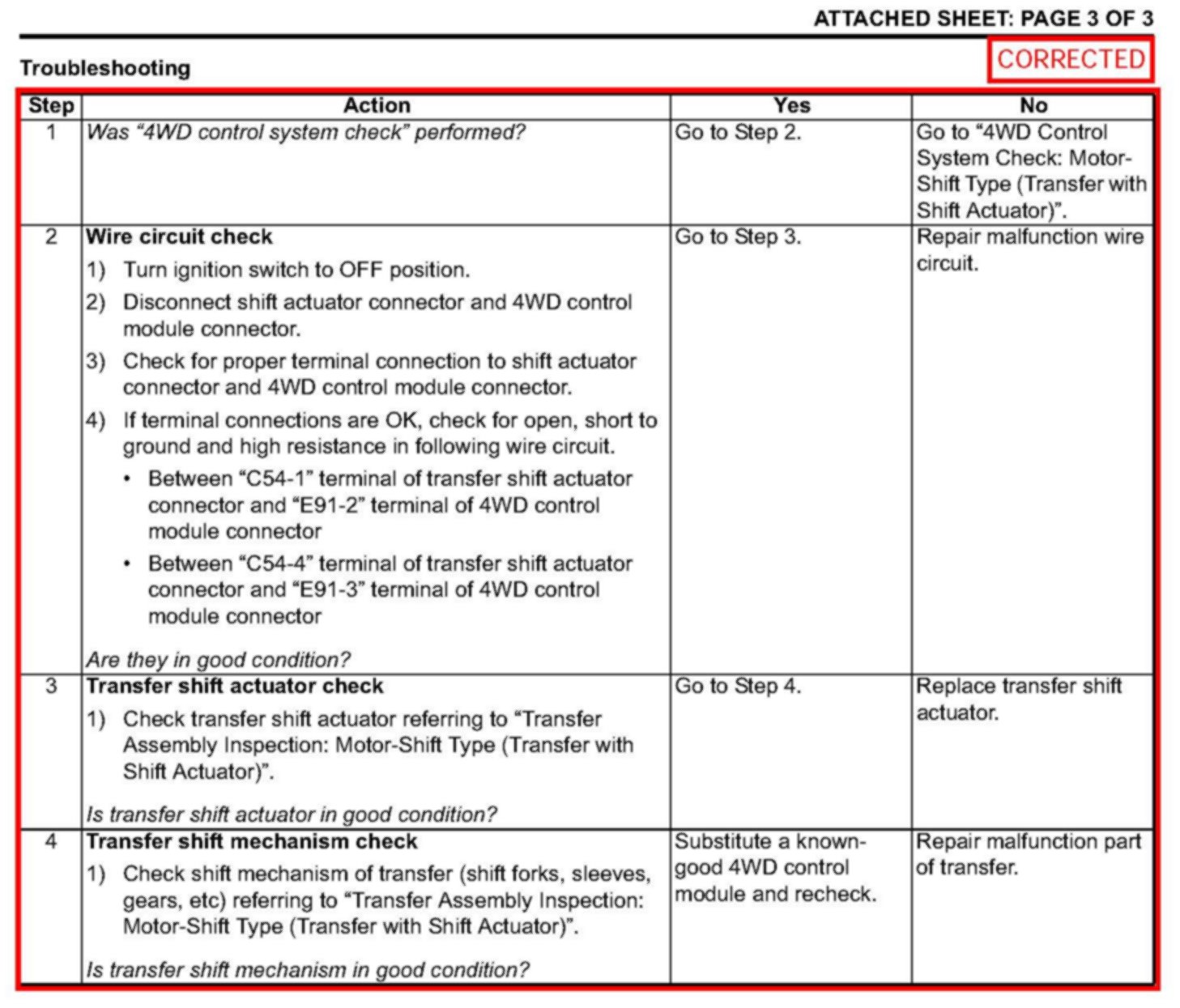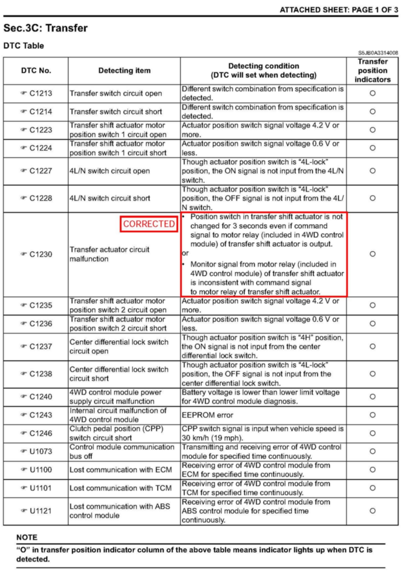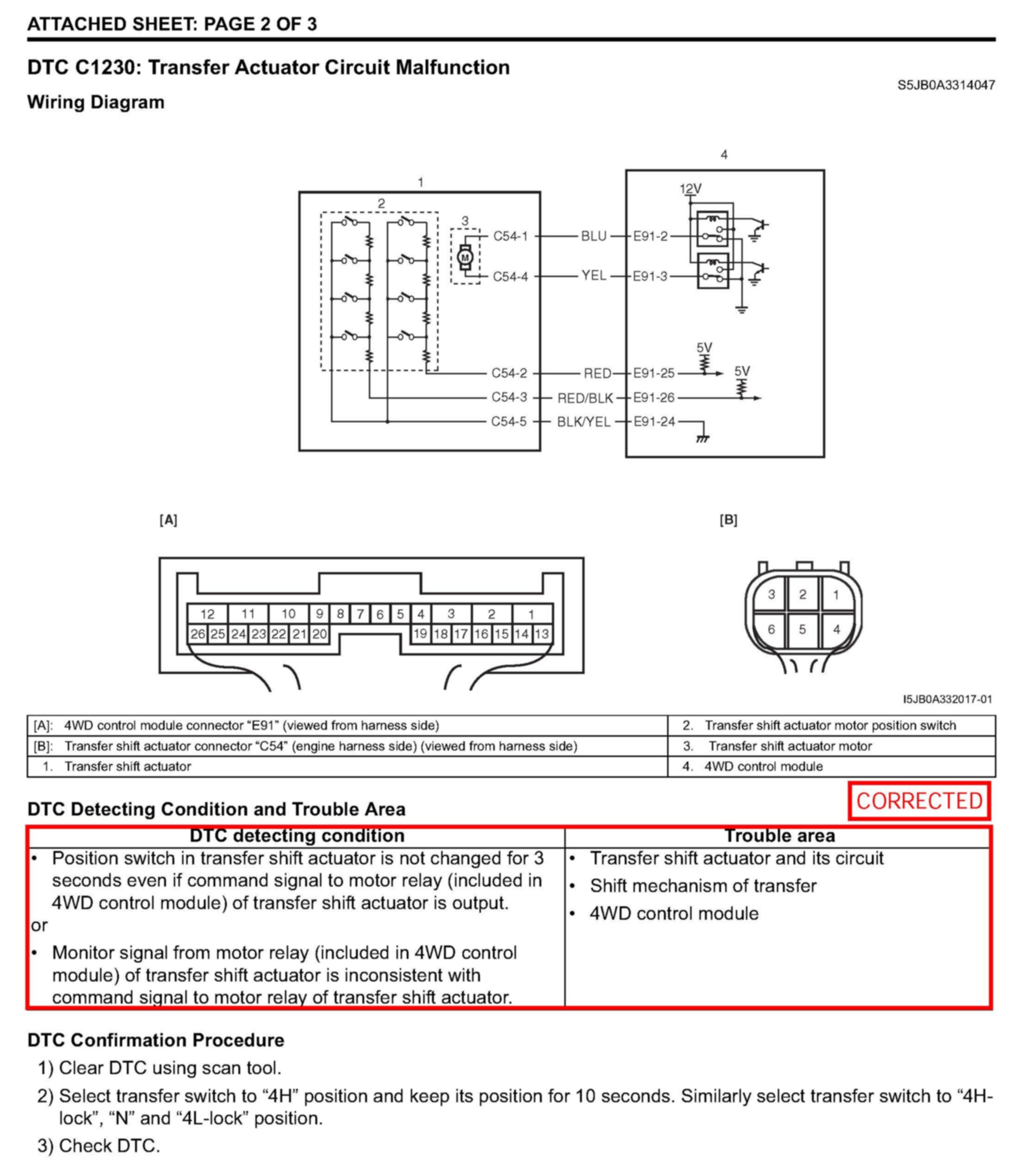 SERVICE MANUAL UPDATE: DTC C1230 (TRANSFER ACTUATOR CIRCUIT MALFUNCTION) DETECTING CONDITION AND TROUBLESHOOTING