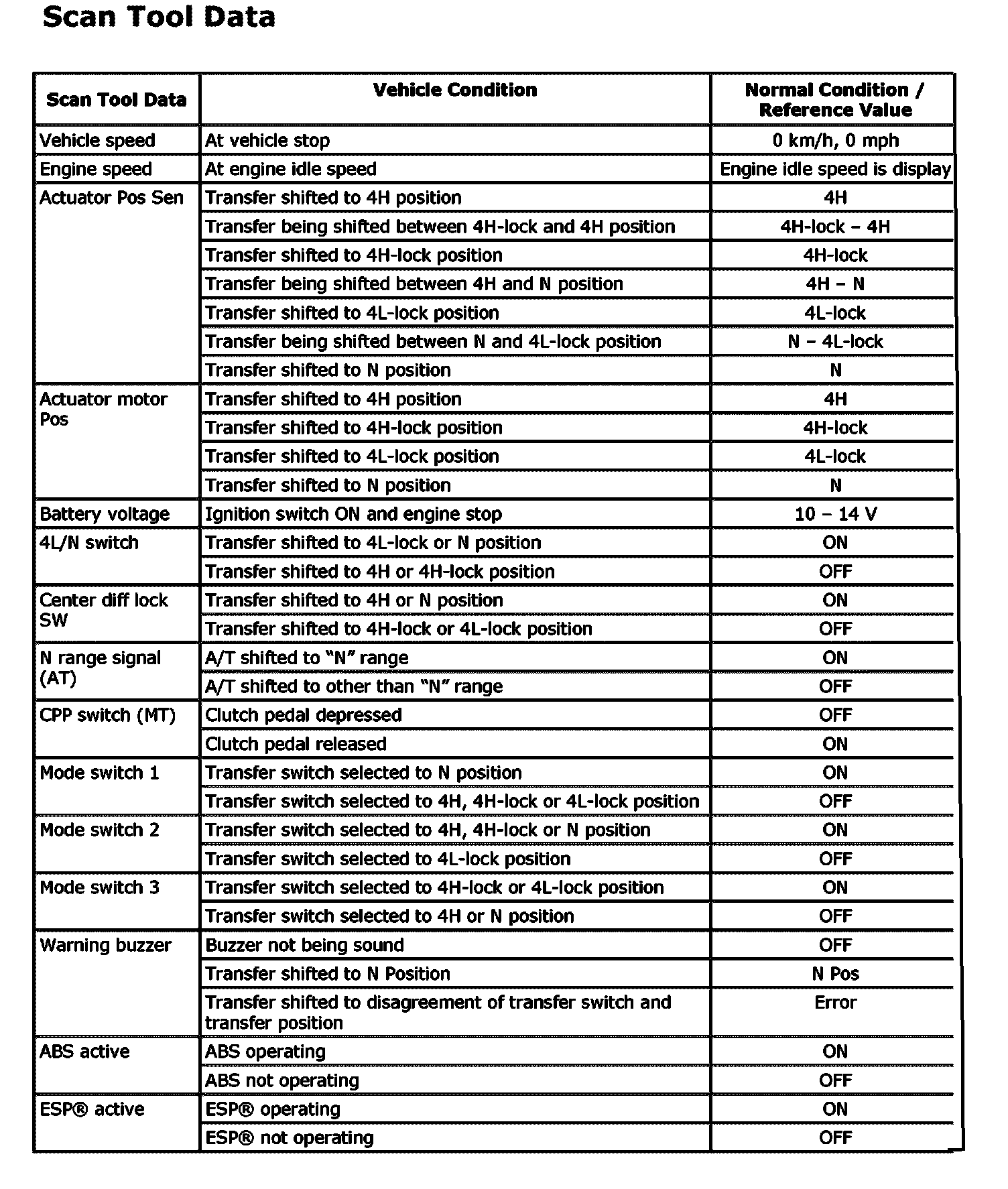 Reference: Scan Tool Data Definitions: Motor-Shift Type (Transfer with Shift Actuator)