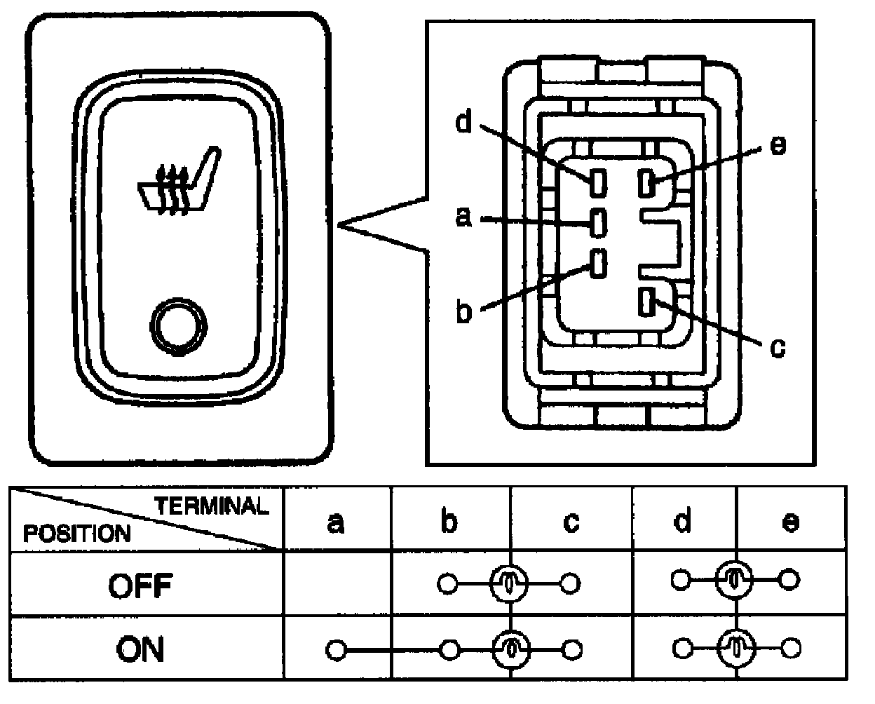 Front Seat Heater Switch (Driver and Passenger Side) Inspection1. Confirm that ignition switch is OFF position.