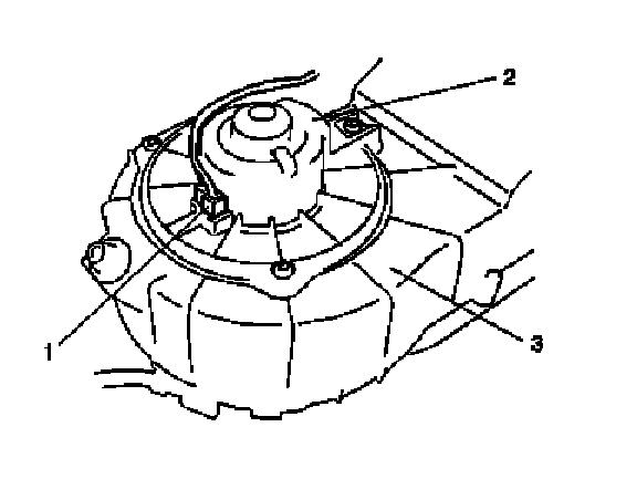 4. Remove rear blower motor assembly (2) from rear A/C unit (3).