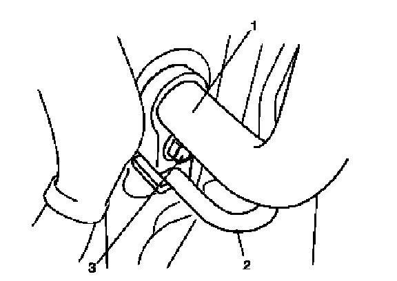 5. Disconnect suction hose (1) and condenser outlet hose (2) by removing attaching bolt (3).