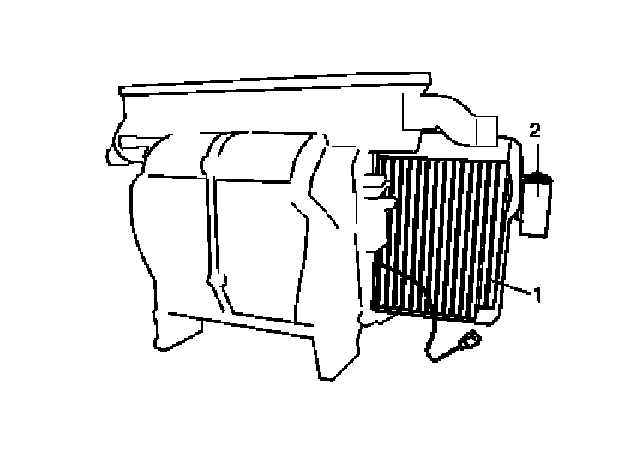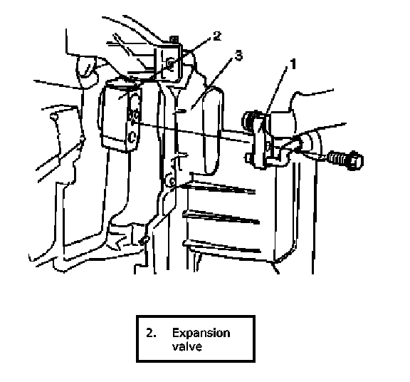 16. Remove evaporator (1) with expansion valve (2), and then heater and cooling unit.