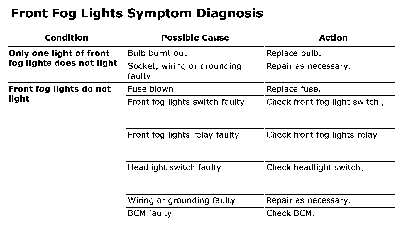Front Fog Lights Symptom Diagnosis: