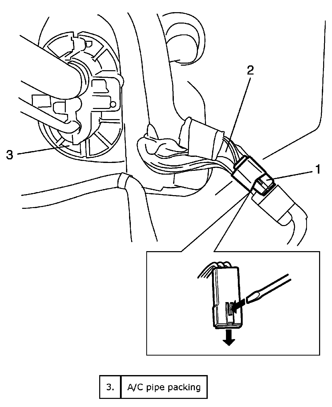 2. Remove headlight diode (1) from main harness (2) as shown in the figure.