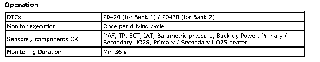 OBD System Description - Catalyst MonitorSystem Description / Monitoring Procedure