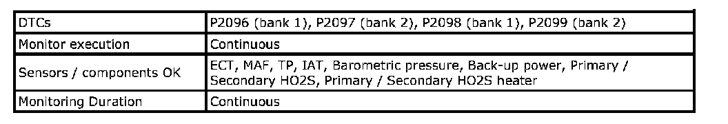 Post Catalyst Fuel Trim System Description / Monitoring Procedure