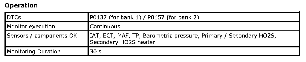 Refer to DTC P0157 / P0158: O2 Sensor (Bank 2 Sensor-2) Circuit Low Voltage / High Voltage. P0157 P0158