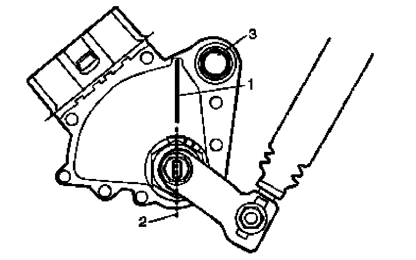 2. Check that center line (2) on manual shift and "N" reference line (1) on sensor are aligned. If not, loosen sensor bolt (3) and align them.